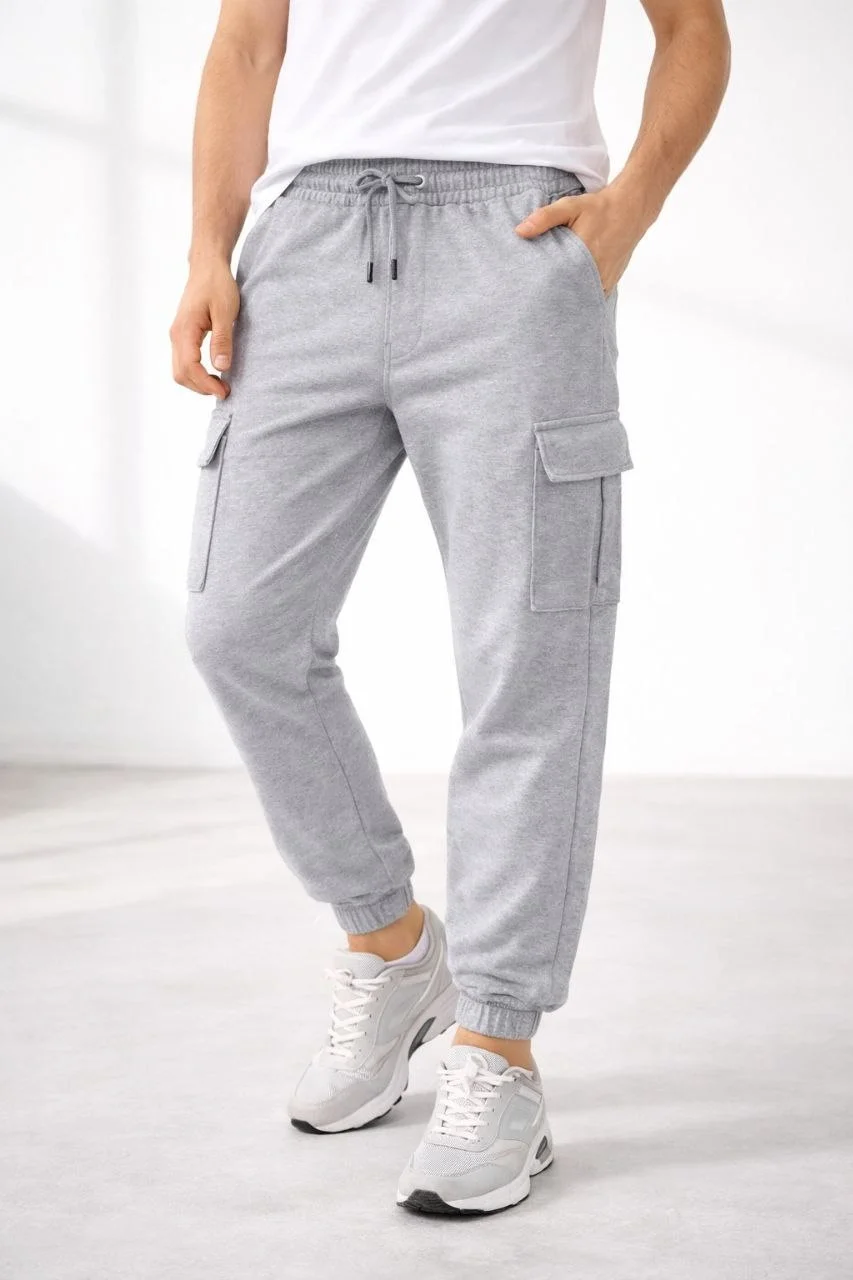 Erkek Jogger Eşofman Altı Kargo Cepli Lastikli Paça Spor Pantolon - Gri
